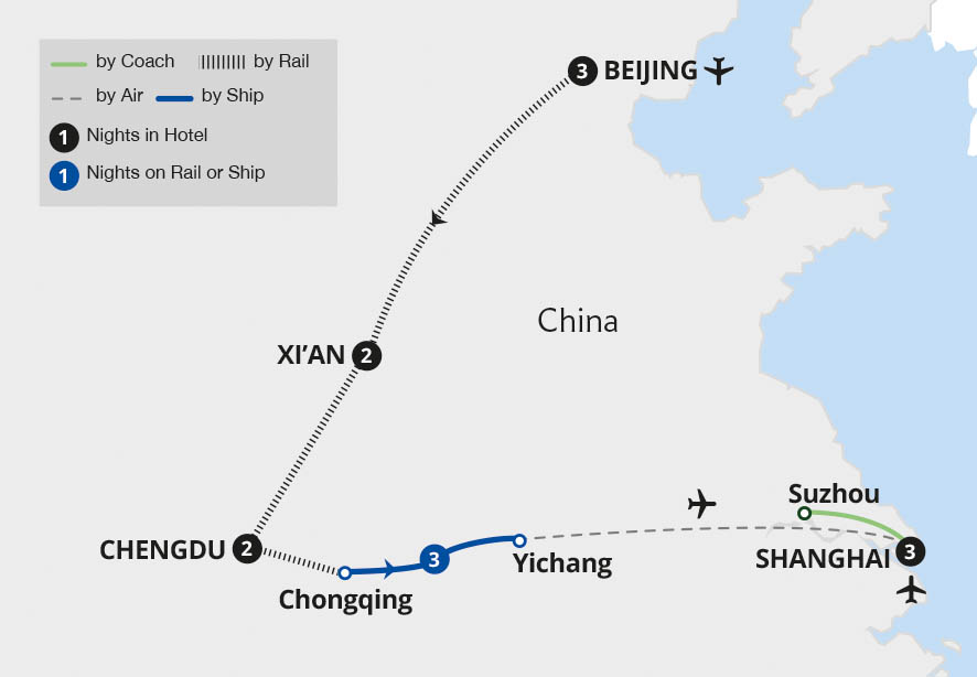 Immerse yourself in the imperial history and breathtaking modernism of mysterious and fascinating China. On an overland adventure, Beijing reveals its history in the spectacular Forbidden City before we are whisked by high-speed rail to Shanghai, where the old and new sit side by side. A cruise along the mighty Yangtze shows us the...
