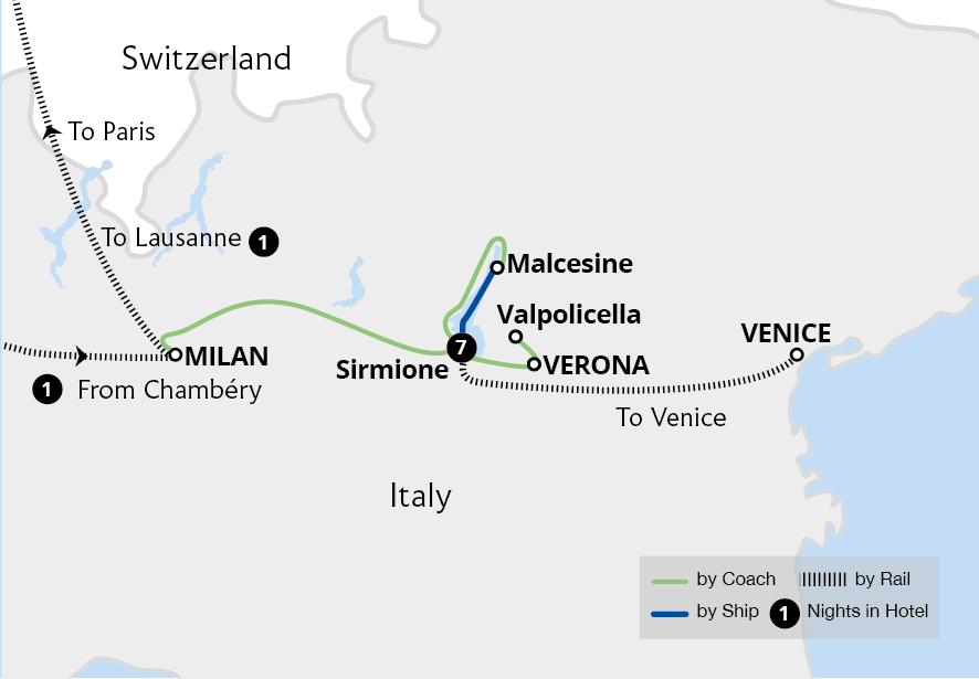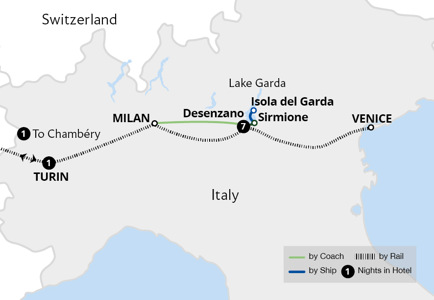 Staying in a spa hotel in the fortress town of Sirmione, set on a picturesque peninsula overlooking Lake Garda, this captivating holiday includes many unforgettable experiences. Join us to uncover the elegance and treasures of northern Italy. Glide along Venice's turquoise canals on a gondola ride - passing Venetian palazzos, intriguing...