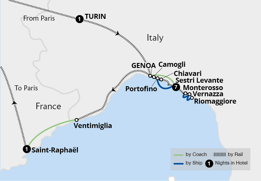 Discover the towns and villages of the Italian Riviera which sparkle beside the Mediterranean Sea, as we explore the Cinque Terre and the harbour town of Portofino. Explore the pastel-hued fishing village of Camogli, a hidden gem, and relax in Sestri Levante - a town between two bays. Sail to San Fruttuoso abbey, set in a secluded cove and only...
