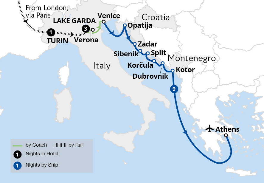 Let the beauty of Italy and the Adriatic unfold on a journey combining lakeside charm, cultural treasures and an unforgettable cruise Croatia and Montenegro's historic towns. Experience the timeless gems of Lake Garda on a GRJ escorted tour, exploring historic Verona and indulging in a dinner and tasting at an authentic Valpolicella winery. Then...