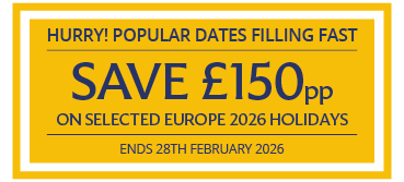 Save £150pp on selected Europe 2026 holidays, when you book by 28th February 2026.