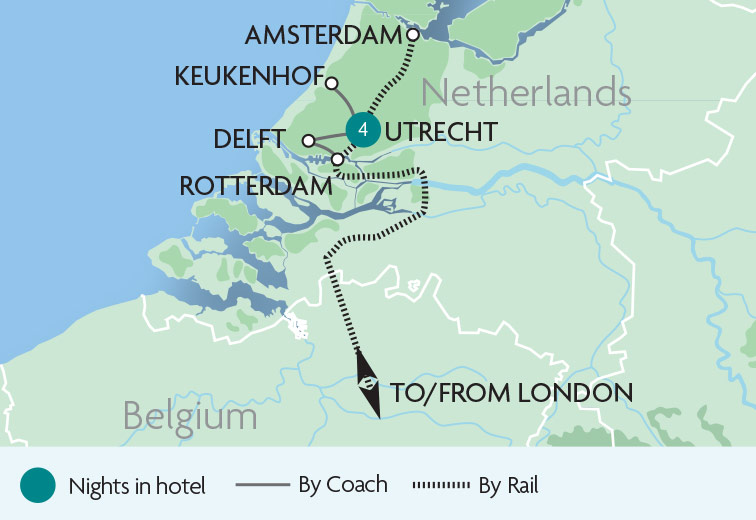 Experience the elaborate displays of Keukenhof Gardens, filled with dazzling spring blooms as the beautiful bulb fields come to life. This delightful short rail holiday to the Netherlands also provides the opportunity to explore some of the country's most charming cities. Brimming with culture and history, Delft is birthplace of artist...