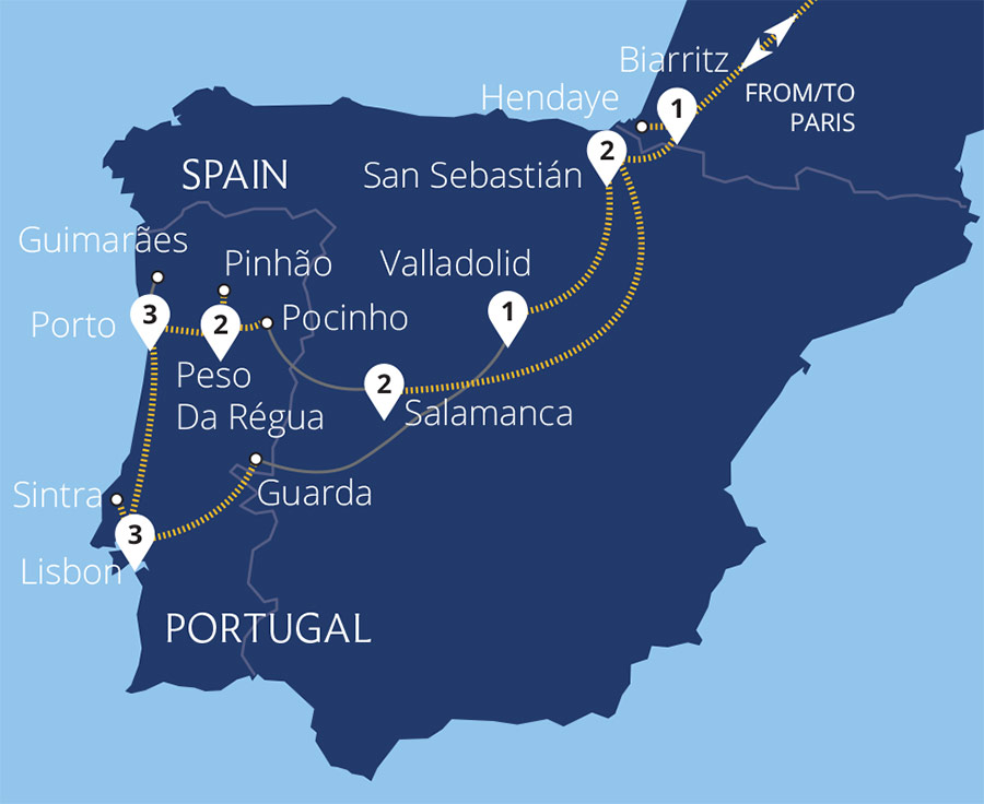 Flowing from Northern Spain to the Atlantic Ocean, the Douro river carves our route through a rolling landscape of vineyards and idyllic locations. On this Iberian holiday, explore the Douro Valley by rail, travelling from Spain's 'Golden City' of Salamanca and through Portugal's beautiful countryside. Experience the region's iconic wine and...