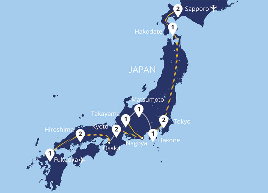 A fascinating blend of spirituality and modernity, explore Japan from the northern island of Hokkaido to Kyushu in the south on this epic overland expedition aboard ultramodern bullet trains. Surrounded by wonderful scenery, relaxed Sapporo provides a great introduction to Japan as we explore Otaru and Hakodate before travelling to the...