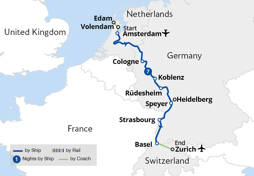 Fly to Amsterdam to experience the breathtaking beauty of the Netherlands to Switzerland on a luxury river cruise. Sail through four countries, admiring stunning forested valleys, charming half-timbered towns and historic cities lining this incredible river's picturesque banks. Marvel at the spectacular scenery of the Rhine Gorge, a UNESCO...