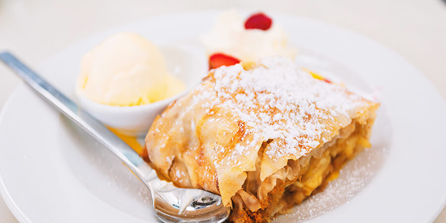 Nothing beats the combination of flaky pastry and spicy apple filling, but this Austrian favourite is famous world-wide for good reason. Simple ingredients deliver bold flavours, with each bite whisking you further along the glorious Danube.