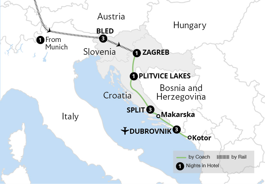 Marvel at stunning natural wonders and idyllic towns during a 13-day holiday to the three former Yugoslavian countries of Slovenia, Croatia and Montenegro. Unwind beside Lake Bled, uncover Slovenia's capital of Ljubljana and take a charming rail trip into the otherworldly Postojna Caves. Explore Croatia's historic capital, Zagreb, admire the...